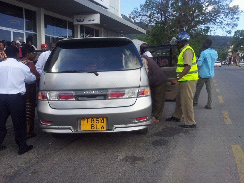 ASKARI WA USALAMA WA BARABARANI AKIWA AMEFIKA KATIKA ENEO LA AJALI , NMB BANK MBALIZI ROAD BRANCH